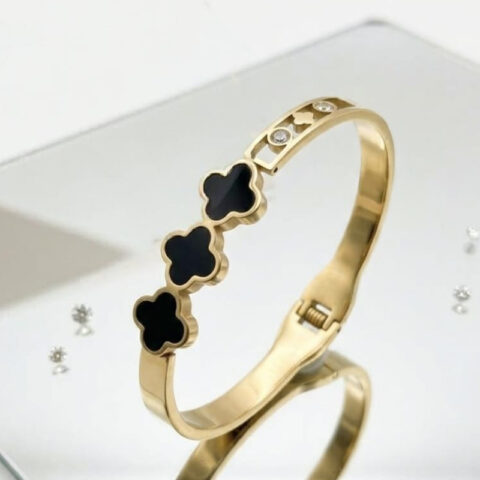 Divine black enamel inlay,clover-shaped charms design anti tarnish bracelet