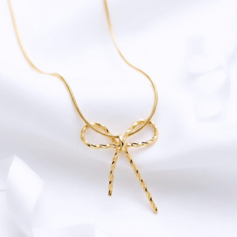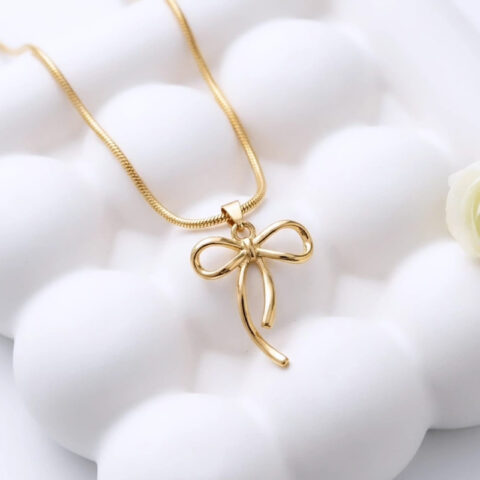 Luxurious bow shape, gold-toned pendant