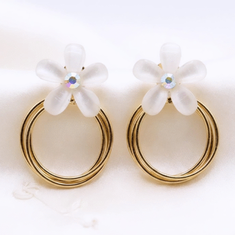 Divine iridescent rhinestone, five-petal flower earrings