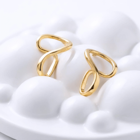 Beautiful modern, sculptural design, high-shine gold finish earrings