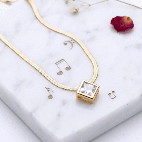 Stunning geometric square, faceted clear crystal anti tarnish pendent