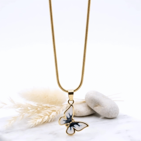 Delicate butterfly-shaped, enamel wings anti tarnish pendent