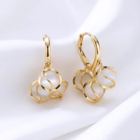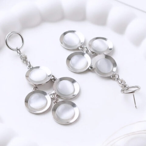 Divine contemporary, chandelier-style drop ,white cabochon earrings