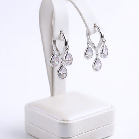 Stunning three dangling pear-cut charms earrings
