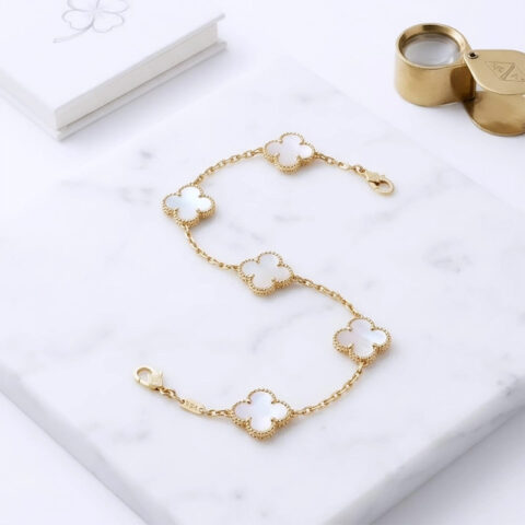 Stunning Van Cleef & Arpels Alhambra, five clover-shaped charms anti tarnish bracelet