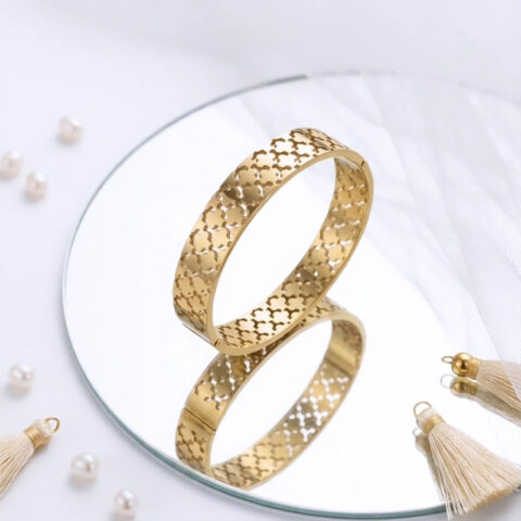 Divine laser-cut clover or quatrefoil pattern anti tarnish bracelet