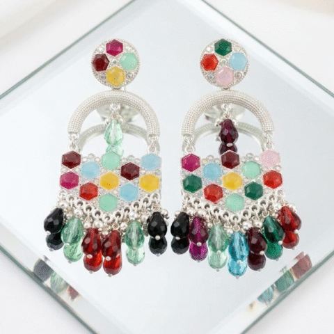 Multicolour Jhumka or Chandbali-style earrings