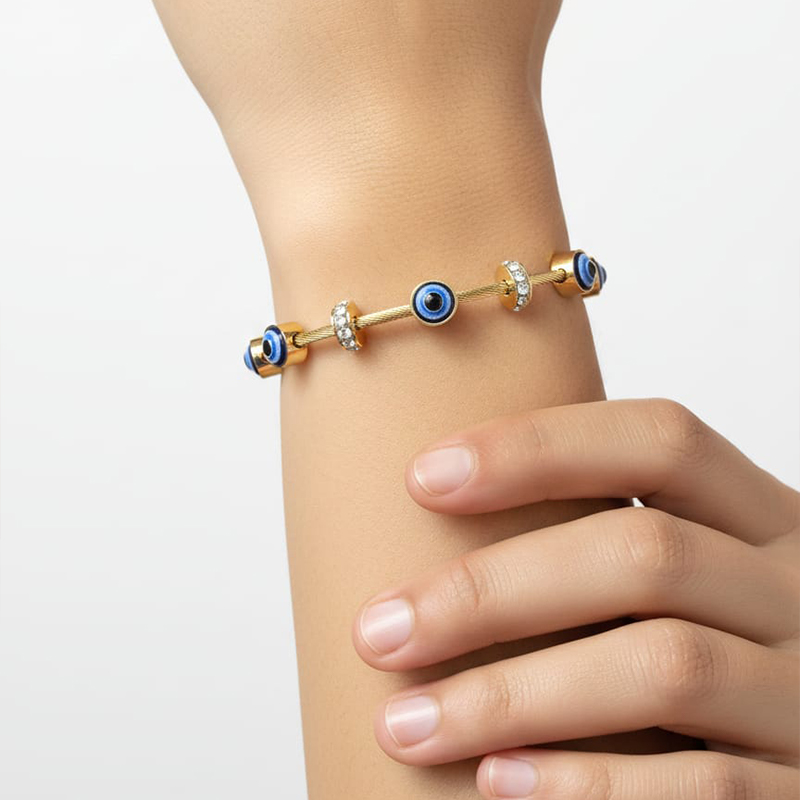 Elevate your everyday style with this beautifully crafted Evil Eye charm bracelet, designed to blend timeless symbolism with modern elegance. Made from high-quality stainless steel, this bracelet offers exceptional durability and long-lasting shine, making it perfect for daily wear without worrying about tarnishing or fading.
