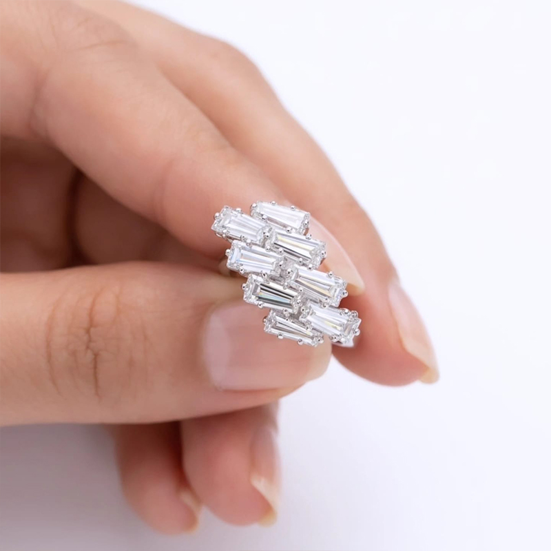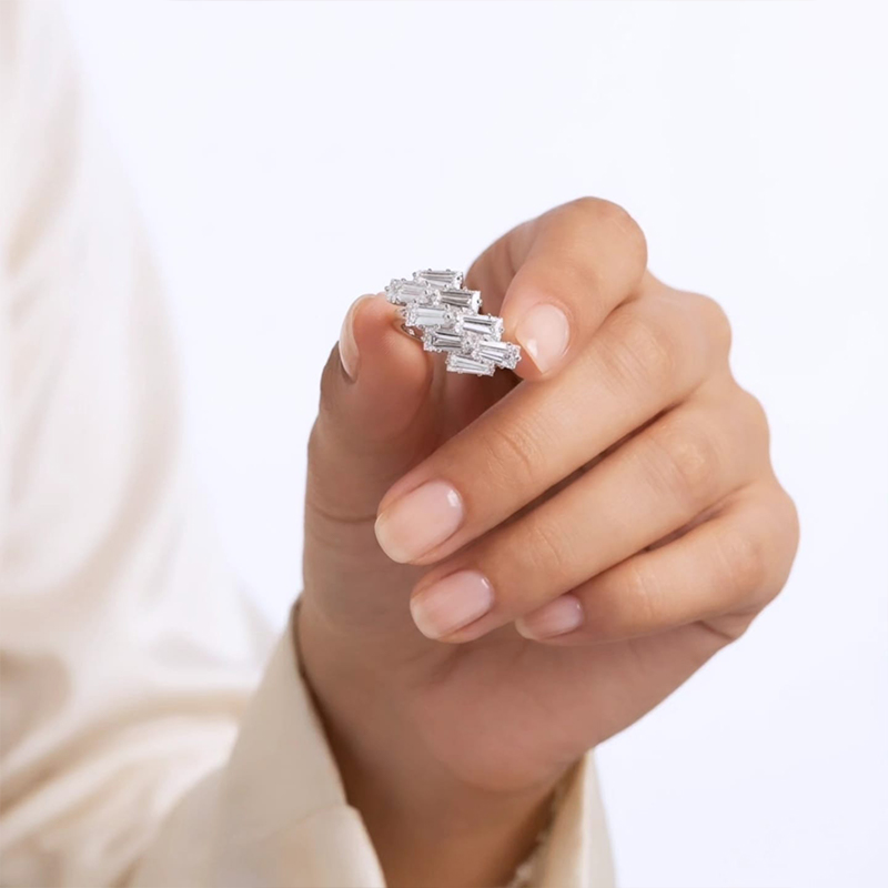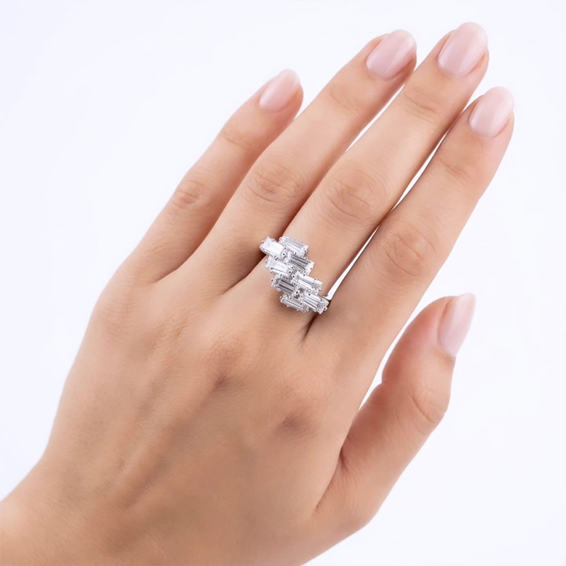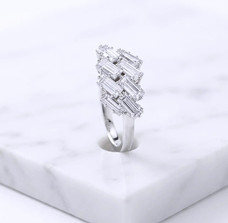 Classy modern geometric design, rectangular baguette-cut stones ring
