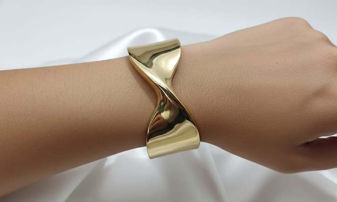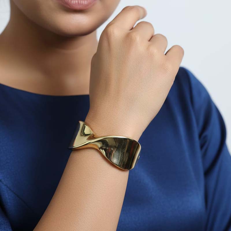 Featuring an open cuff design, this bracelet ensures a comfortable and adjustable fit for all-day wear. Lightweight yet stylish, it transitions seamlessly from casual daywear to evening occasions. A perfect blend of modern design and classic charm, this twisted cuff bracelet is an ideal accessory for women who love understated luxury.