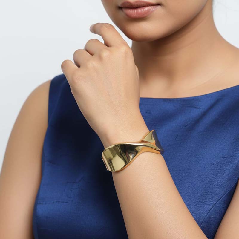 Elegant Twisted Cuff Design Gold-Tone Kada