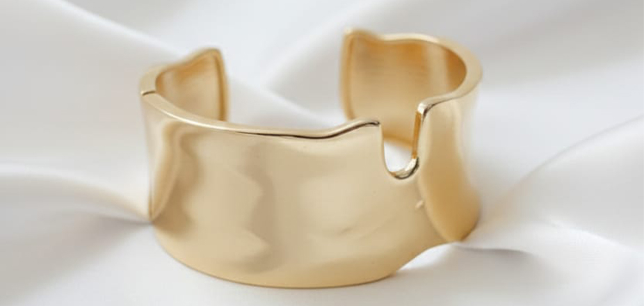 A sleek and stylish bright gold-tone cuff/bangle bracelet designed for everyday wear. Lightweight, comfortable, and effortlessly elegant—perfect for adding a touch of shine to any casual or work outfit.