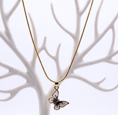 Delicate butterfly-shaped, enamel wings anti tarnish pendent