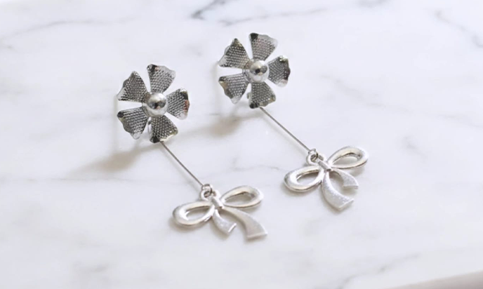 Delicate, dreamy, and effortlessly graceful — these earrings bloom with charm. The top features a refined five-petal flower stud, symbolizing purity and beauty, crafted with smooth curves and a soft, radiant finish. From the floral center gently falls a whimsical drop element, creating natural movement that catches the light with every turn of your head.