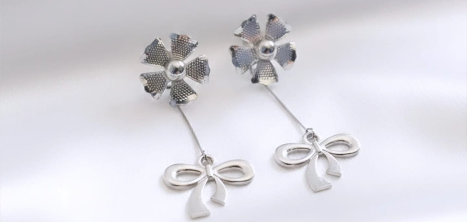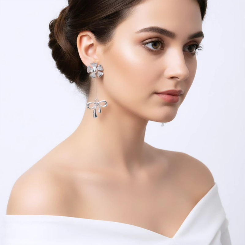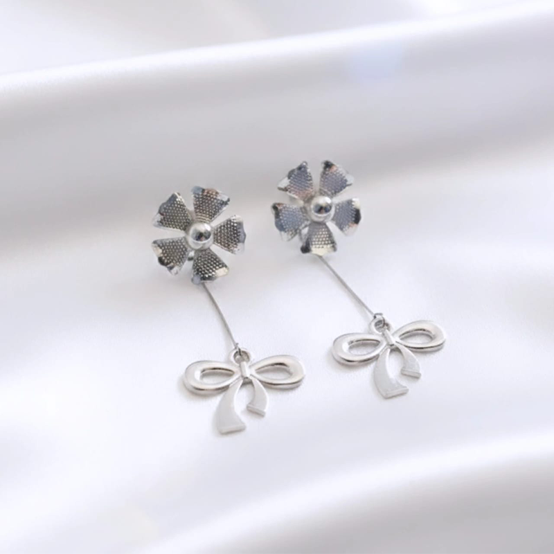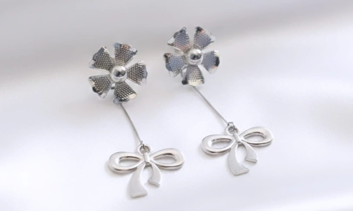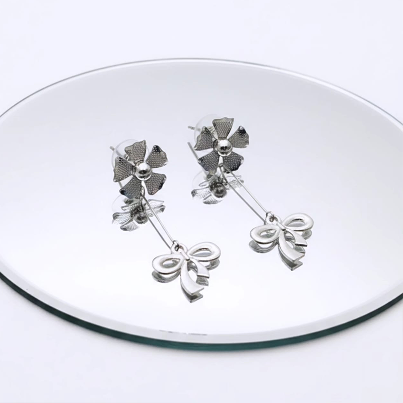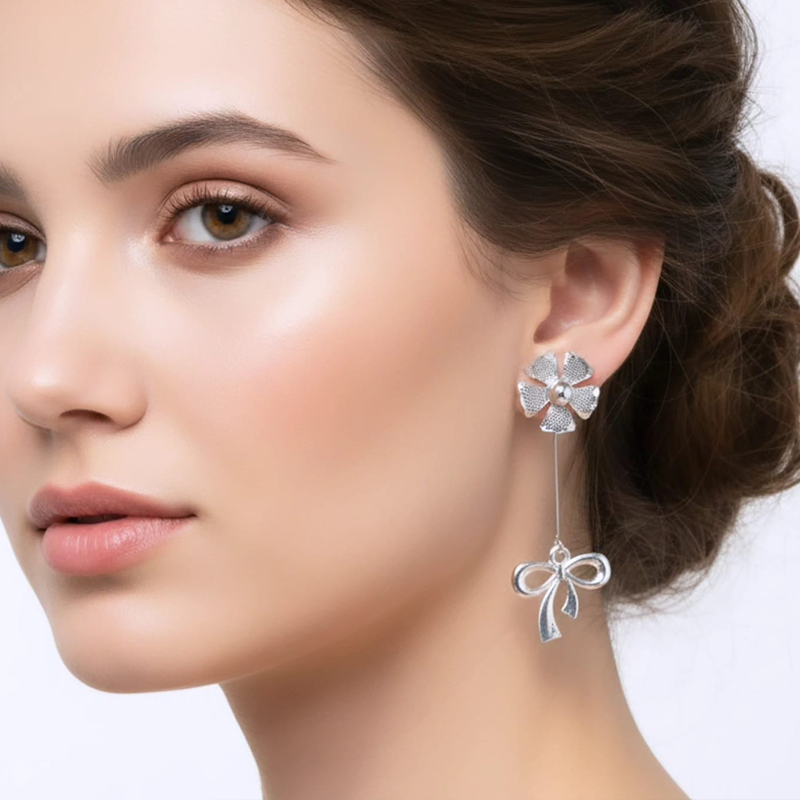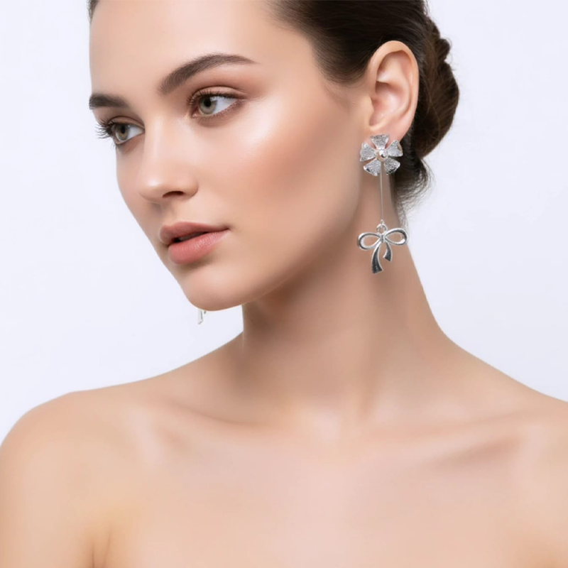 A finely suspended drop element hangs beneath the floral stud, designed to sway gently with every natural motion. Instead of staying still, it moves lightly as you walk or turn your head, catching glimmers of light and adding a delicate sense of life to the piece.