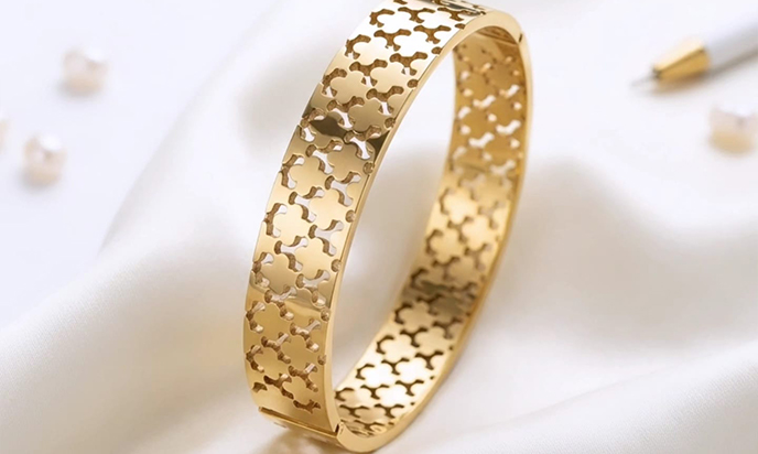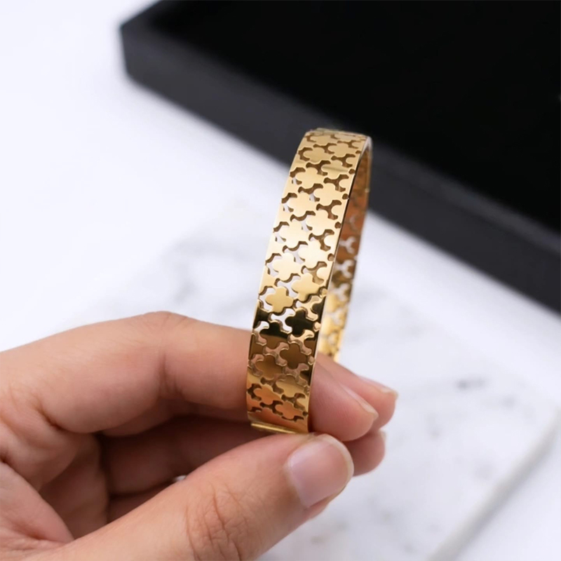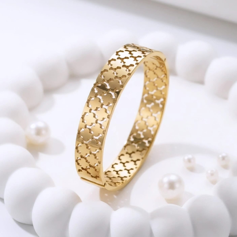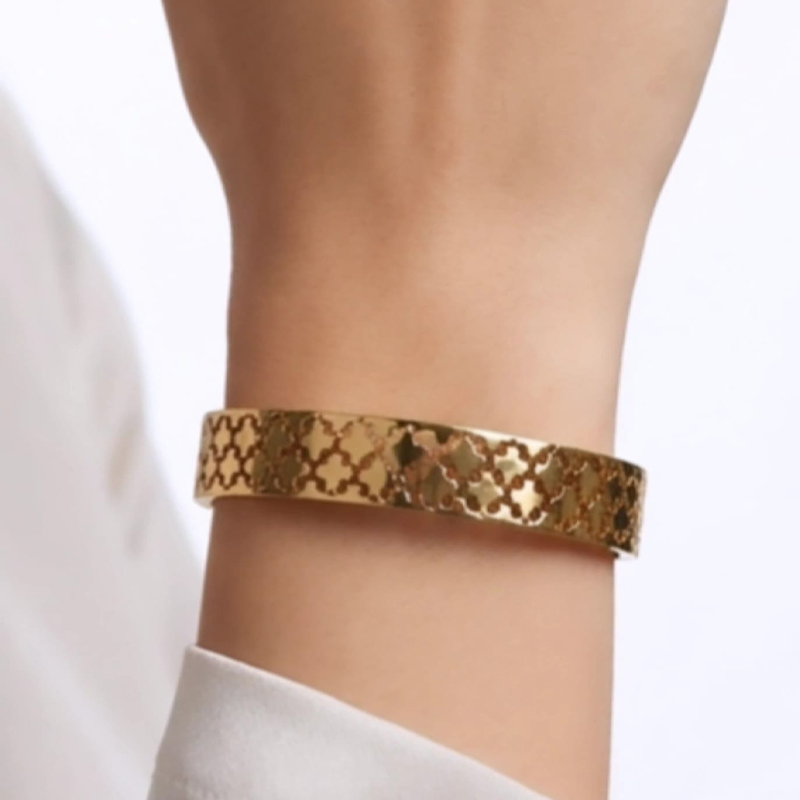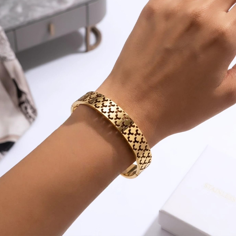Divine laser-cut clover or quatrefoil pattern anti tarnish bracelet