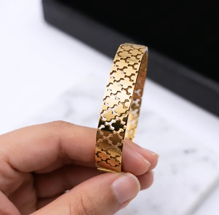 Be the first to review “Divine laser-cut clover or quatrefoil pattern anti tarnish bracelet” Cancel reply