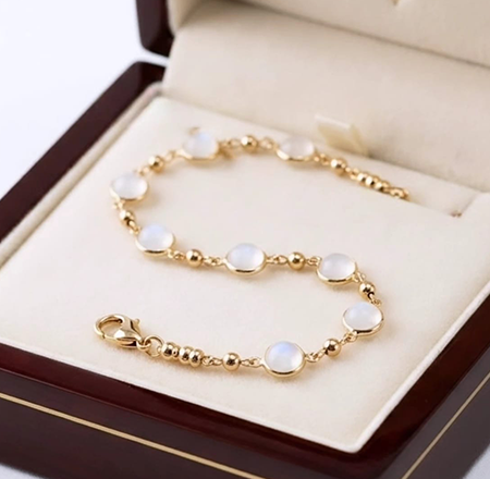 2 reviews for Divine round, cabochon-cut moonstones, station-style anti tarnish bracelet