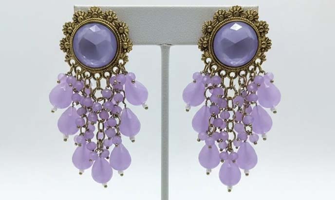 Add a touch of grace and sophistication to your ensemble with these elegant dangle chandelier earrings in a soft lavender hue. The delicate design allows the earrings to sway beautifully with every movement, creating a subtle yet eye-catching statement. The gentle lavender tone brings a fresh, feminine charm that complements both casual and formal outfits.