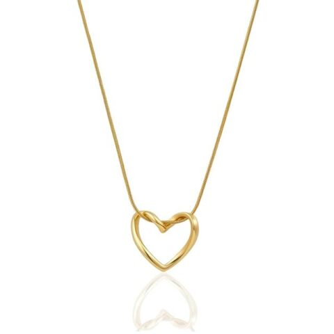 Delicate heart shaped, gold toned thin classical chain anti tarnish pendent