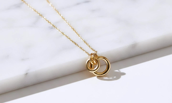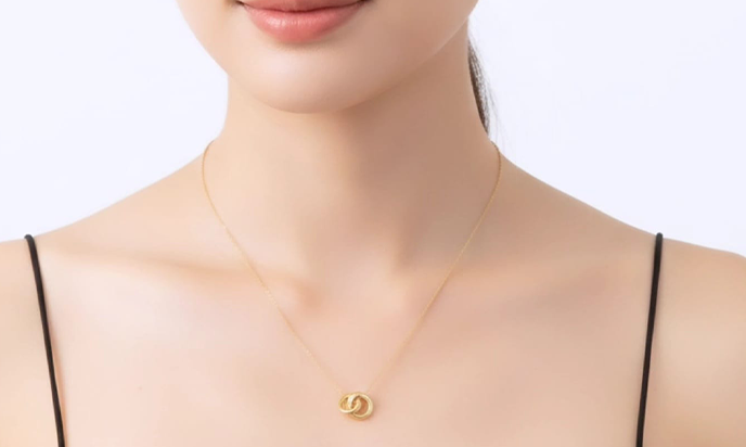Elegant interlocking double-ring design anti tarnish pendent
