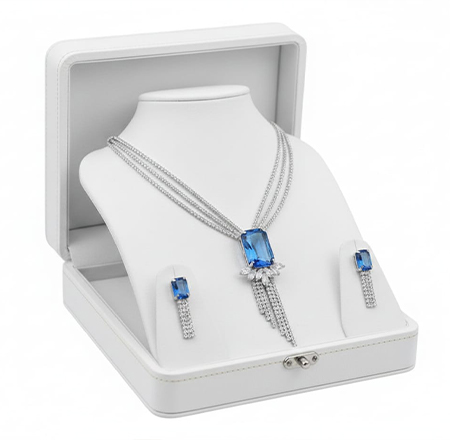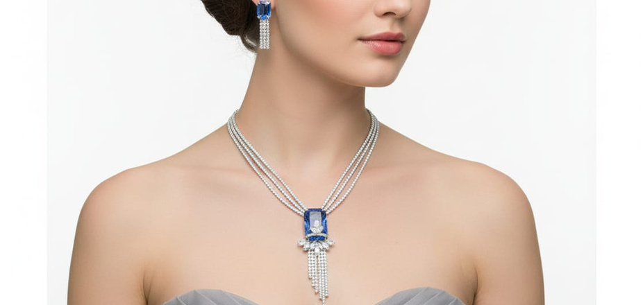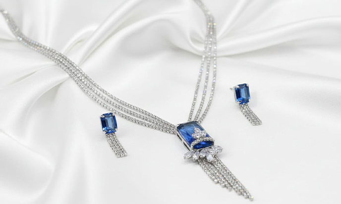 Elegant silver with blue diamond Necklace and earring set