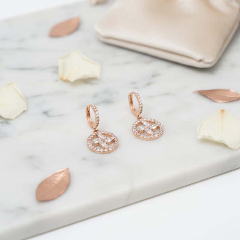 Enhance your look with these gorgeous huggie-style hoops featuring a graceful rose gold drop design. Crafted to sit snugly on the ear, the huggie hoops offer a comfortable fit while the delicate drop detail adds a touch of elegance and movement. The warm rose gold tone gives these earrings a soft, feminine glow that complements every skin tone.