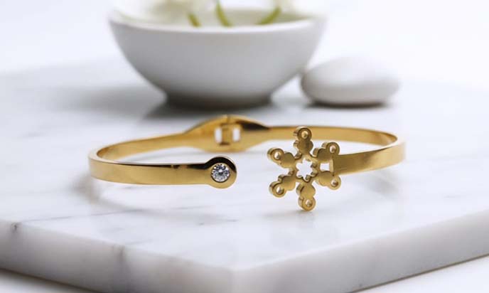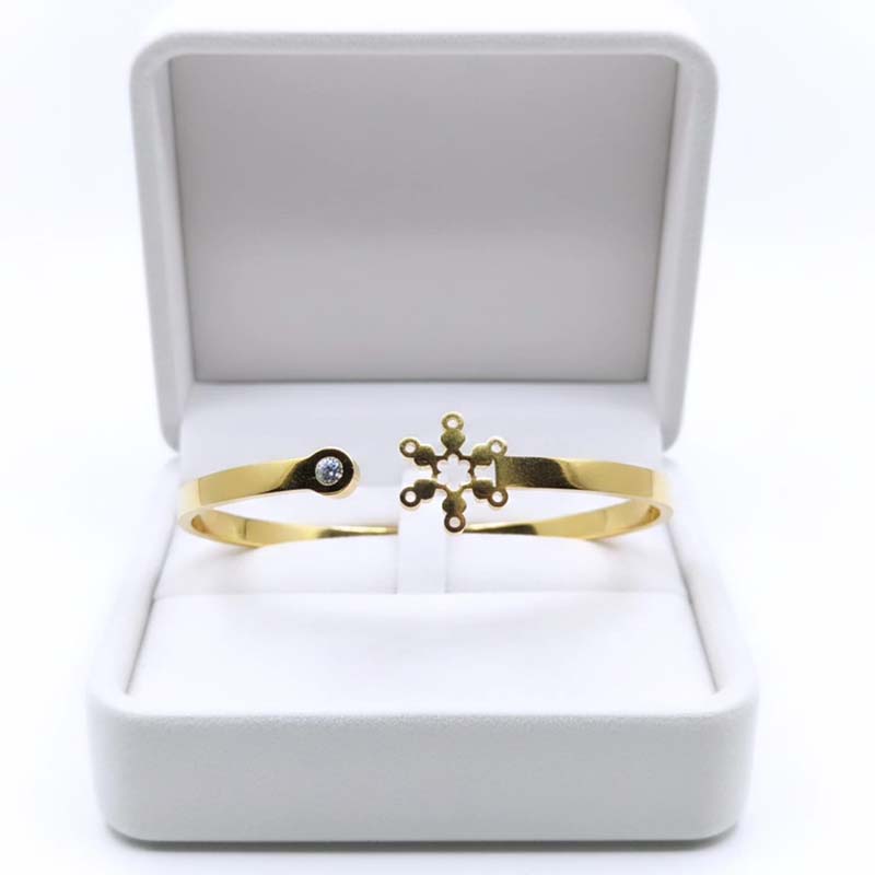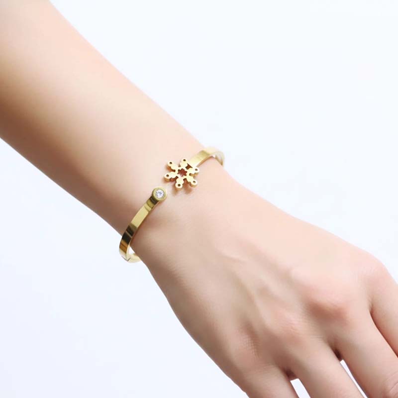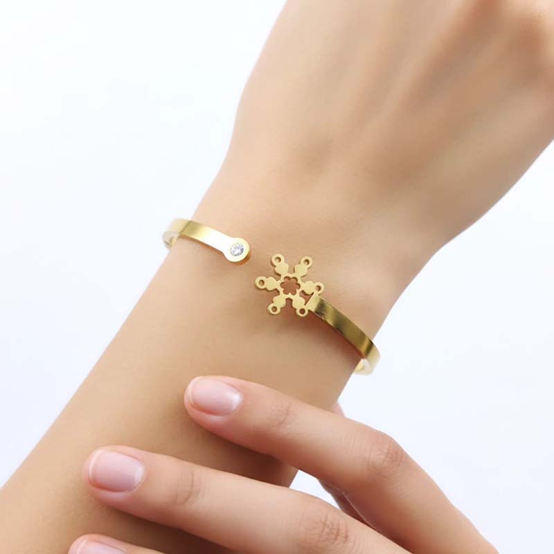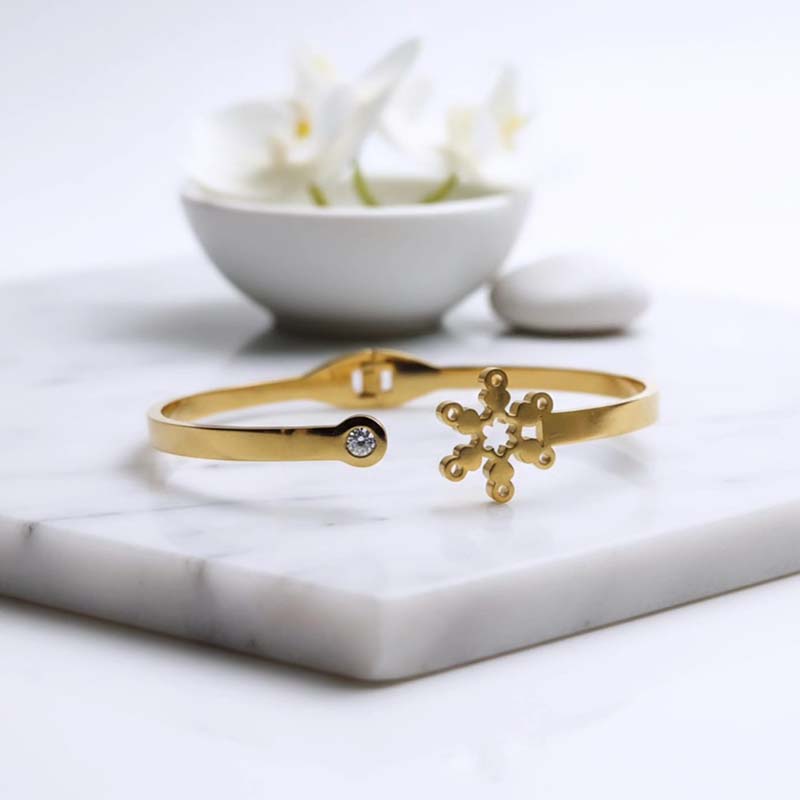 Add a touch of elegance and charm to your jewelry collection with this gorgeous snowflake design gold-toned bracelet. Featuring a beautifully crafted snowflake motif, it symbolizes grace, uniqueness, and timeless beauty. The polished gold-tone finish gives it a subtle, luxurious shine that complements any outfit effortlessly.