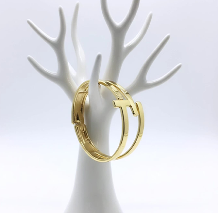 Luxurious vertical “T” or bar-shaped,spring-hinge style cuff anti tarnish bracelet