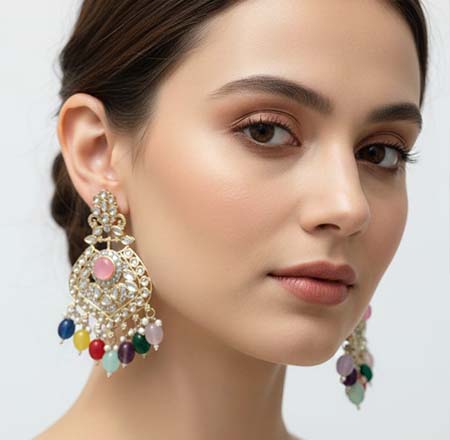 Easy to pair with sarees, lehengas, kurtis, and ethnic suits, these earrings add a pop of colour and graceful movement to any outfit. Lightweight yet statement-worthy, Vibrant Multicolour Jhumka Earrings are a must-have accessory for celebrating every moment in style.