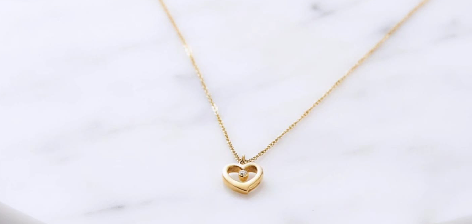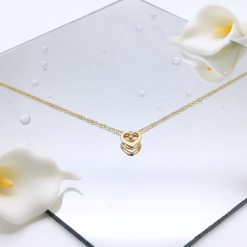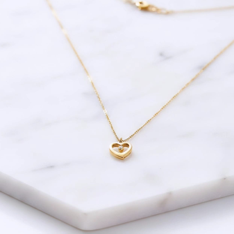 Delicate heart shaped, gold toned thin classical chain anti tarnish pendent
