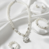 Classy clover or floral-shaped halo, four-piece pearl set