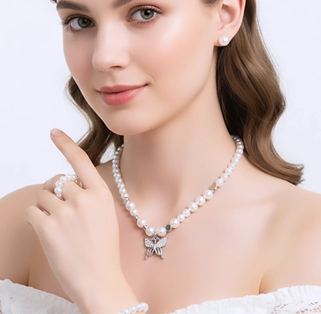 Delicate and refined, this pearl butterfly jewellery set captures the beauty of simplicity with a graceful, feminine touch. Featuring lustrous pearls paired with charming butterfly designs, it symbolizes transformation, beauty, and timeless style.