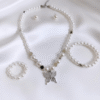 Classy clover or floral-shaped halo, four-piece pearl set