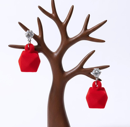 The glossy crystal brings brightness and clarity, while the soft flocked surface adds warmth and subtle texture. Together they balance bold shine with gentle elegance, giving the earrings a contemporary yet sophisticated appearance.