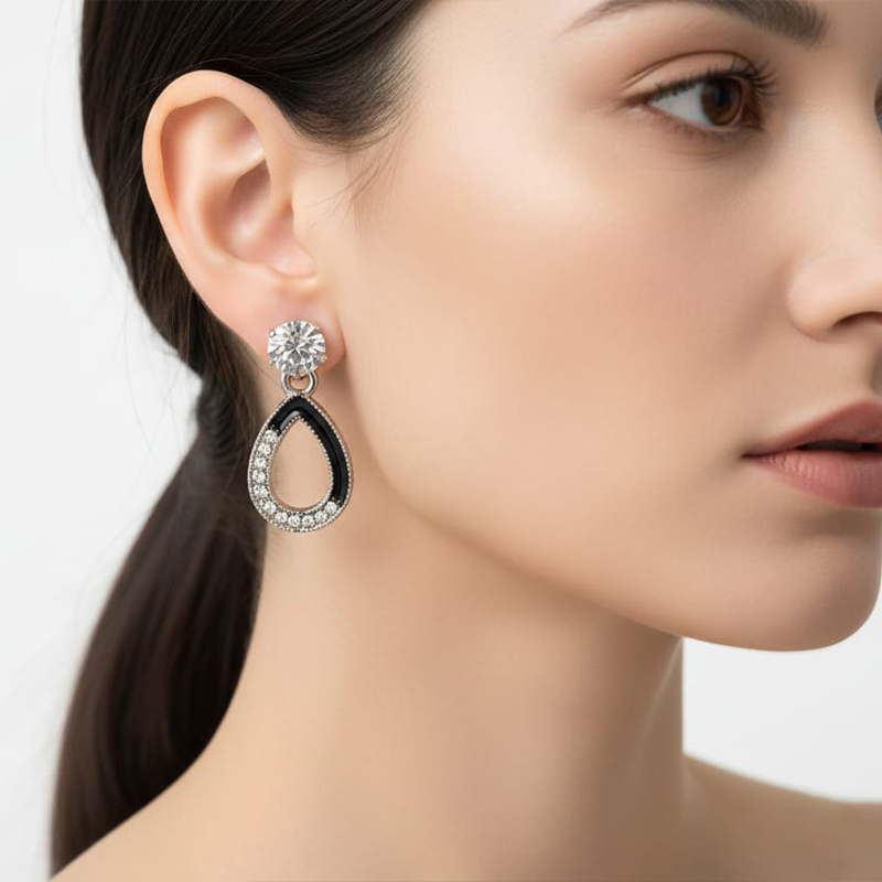 The upper stud sits comfortably on the ear, offering a clean and refined focal point, while the lower dangle element adds a soft, graceful sway with every step. This two-part construction creates a subtle yet eye-catching dynamic—perfect for those who love a hint of playful charm without overwhelming their outfit.