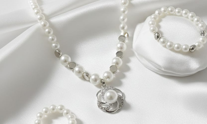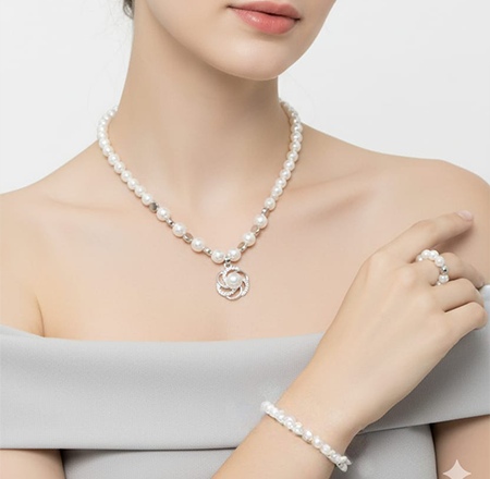 The luminous faux pearls offer a smooth, radiant finish, while the polished silver-tone details enhance the overall brilliance of the set. Perfectly coordinated, this set creates a graceful and polished look suitable for weddings, parties, formal occasions, or elevating everyday outfits.