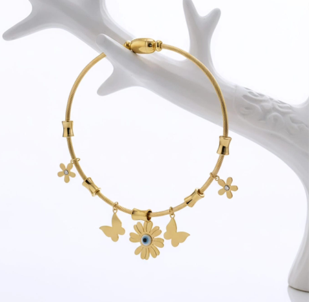 Stunning twisted cable wire,Butterflies,Flowers, Evil Eye design anti tarnish bracelet