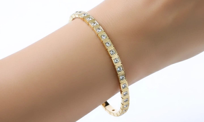 Timeless square-cut stones, Gold- toned anti tarnish bangle bracelet